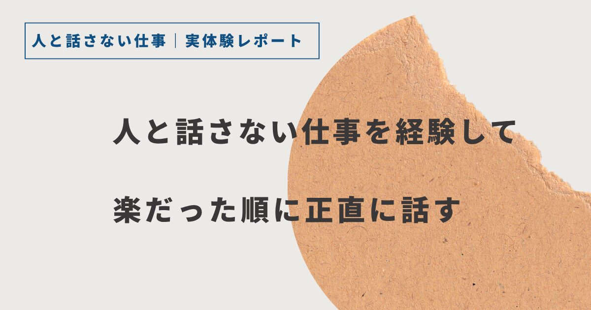 仕事を変える前、ぼくは「人と話さなければ何でもいい」と思っていた。でも実際に経験してみると、同じ「人と話さない仕事」でもまったく疲れ方が違った。その差がどこから来るのか、今ならわかる気がする。